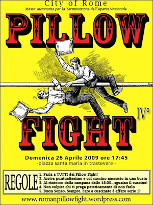 Domenica 26 aprile (non 27, ho capito cazzo!), ore 17:45, Piazza Santa Maria in Trastevere… torna il Roman Pillow Fight!