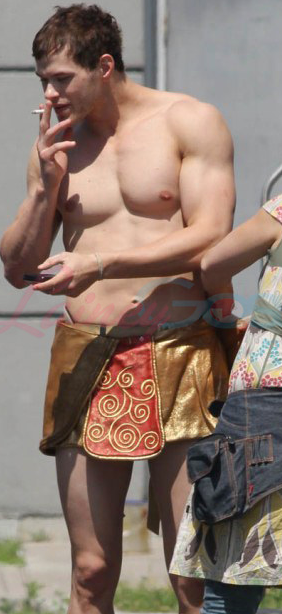 Ho finalmente trovato un difetto a Kellan Lutz, beccato con un osceno costume di scena su un set.