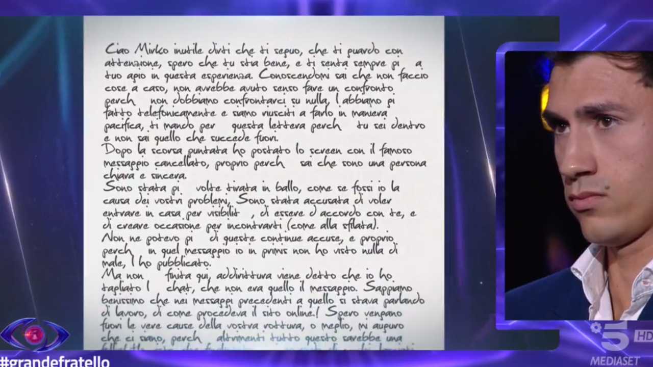 Perla manda una lettera al Grande Fratello per Mirko