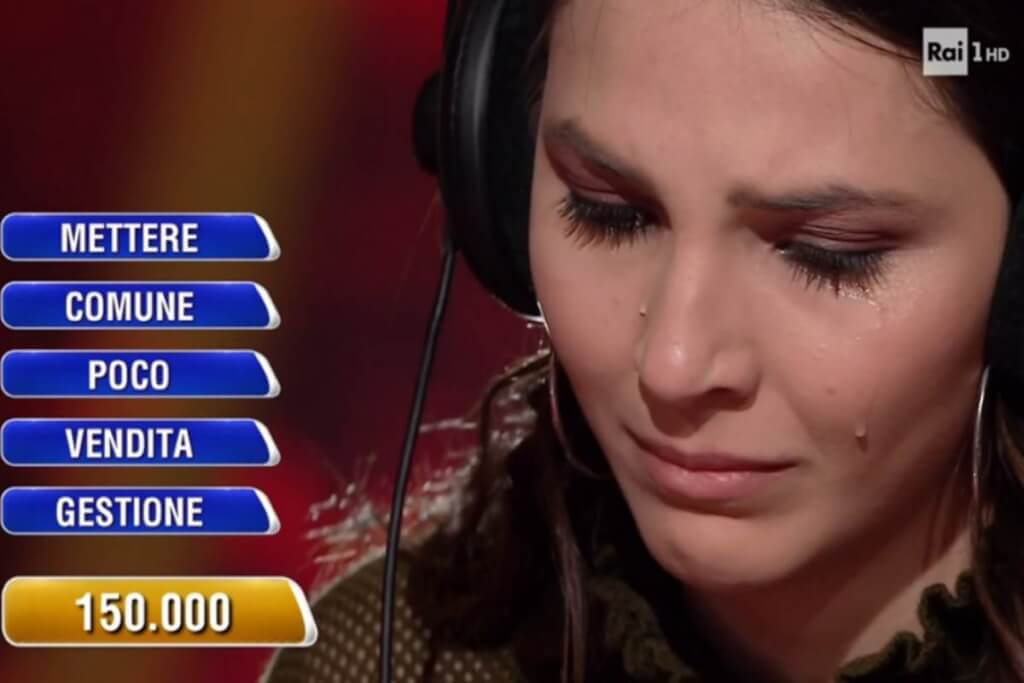 Poco prima dello scadere dei 60 secondi messi a sua disposizione, la donna è stata colpita da un attimo di sconforto ed è scoppiata in lacrime. La regia ha addirittura ripreso le lacrime che le rigavano il volto, situazione di cui si è accorto anche lo stesso Marco Liorni.