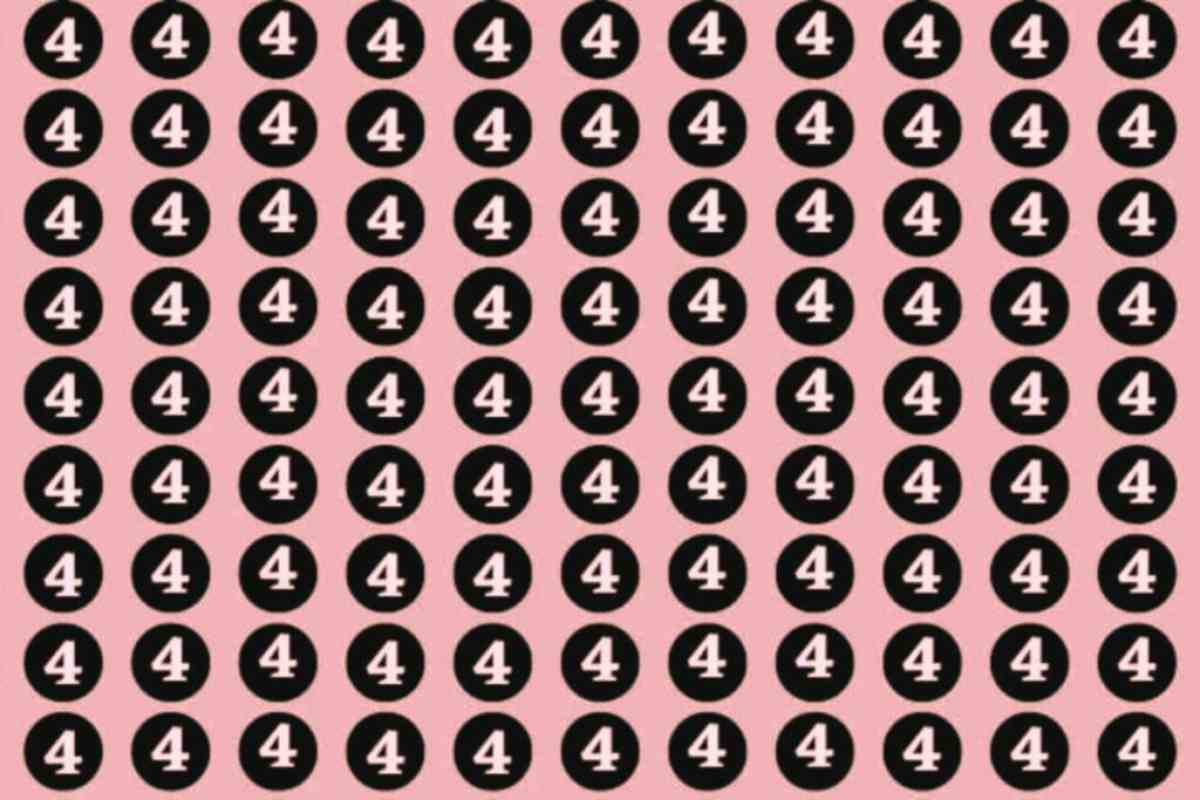 Vediamo se qualcuno riuscirà a risolvere l’enigma in soli tre secondi. Di fronte a voi un’immagine nera su cui apparentemente vi sono soltanto tanti numeri 4 uno dietro l’altro. Tra di loro però vi è anche la lettera A la quale deve essere trovata nel più breve tempo possibile così da superare appieno questo test di intelligenza.
